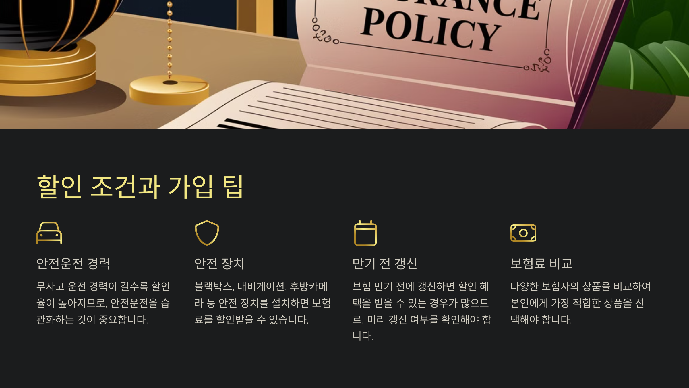 또한, 차량에 블랙박스를 설치하는 것도 큰 절약이 될 수 있어요. 블랙박스 장착 후 보험사에 등록하면 즉시 할인이 적용되기 때문에, 꼭 잊지 말고 활용하세요.