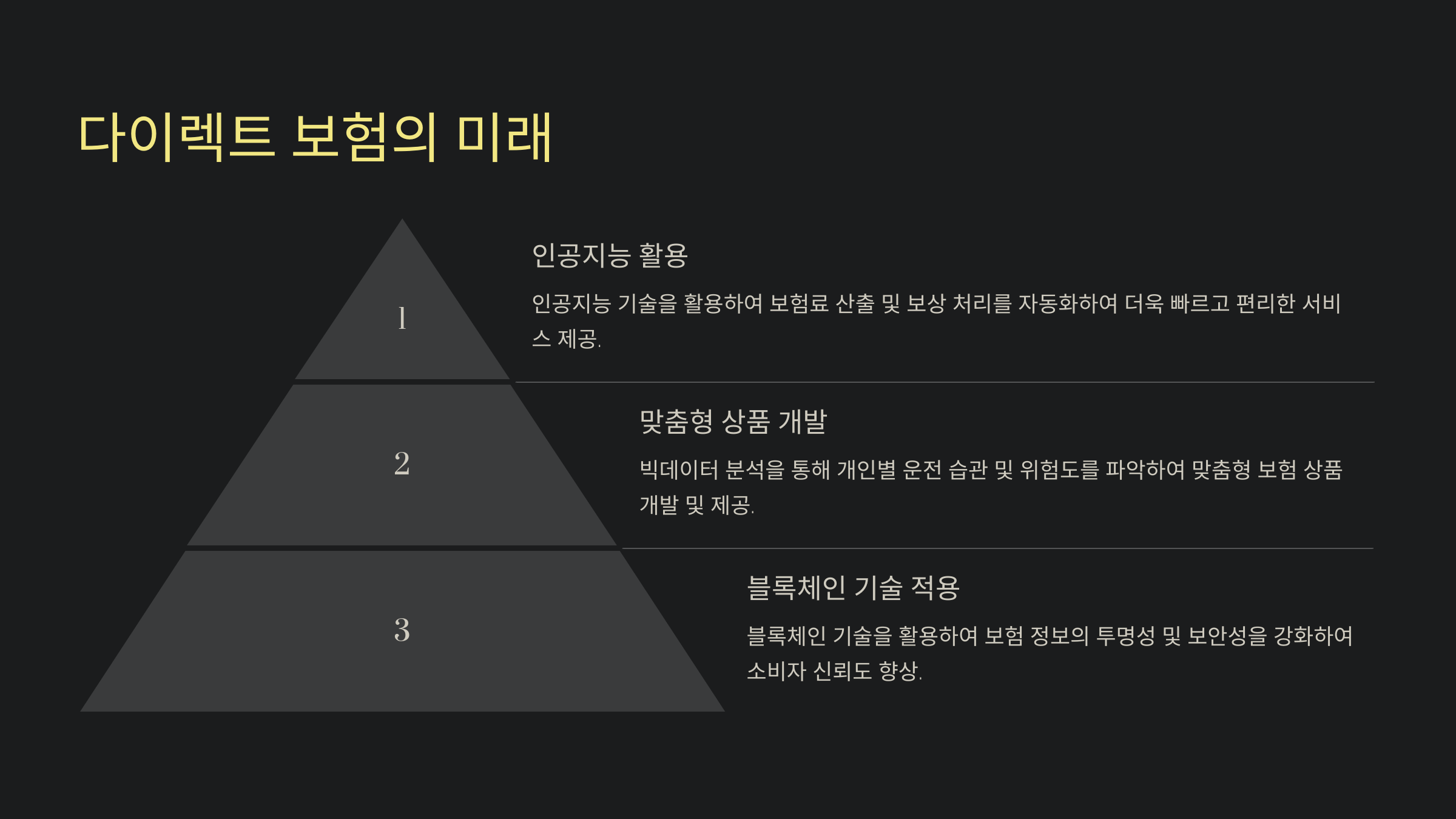 다이렉트 자동차보험은 기술의 발전과 함께 더욱 혁신적인 방향으로 발전하고 있어요. 특히, 인공지능(AI)과 빅데이터를 활용한 맞춤형 보험 상품이 등장하면서 고객에게 보다 정확한 보장과 혜택을 제공할 수 있게 되었답니다.