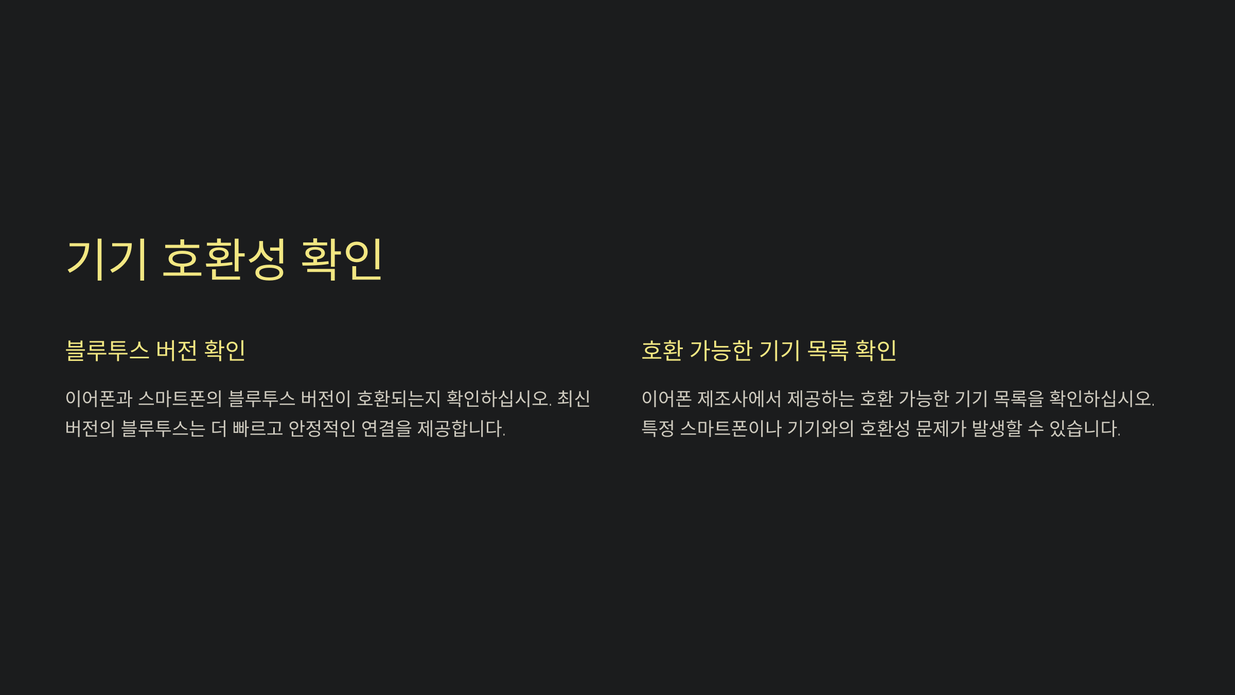 이어폰을 연결하기 전에 먼저 스마트폰 또는 사용하는 기기의 블루투스 호환성을 확인해야 해요. 대부분의 최신 스마트폰은 블루투스 기능이 기본으로 제공되지만, 오래된 기기의 경우 최신 블루투스 버전을 지원하지 않을 수 있답니다.
