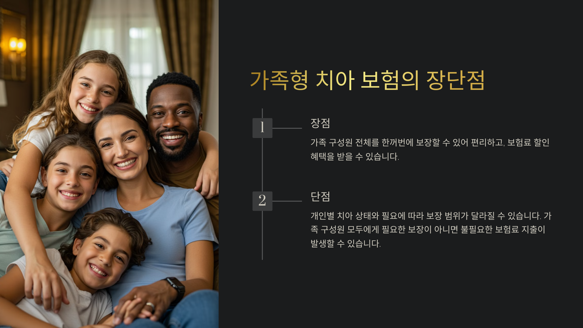 결론적으로, 가족 구성원의 치아 건강 상태와 필요한 보장 내용을 꼼꼼히 검토해 보험을 선택하는 것이 가장 중요해요!