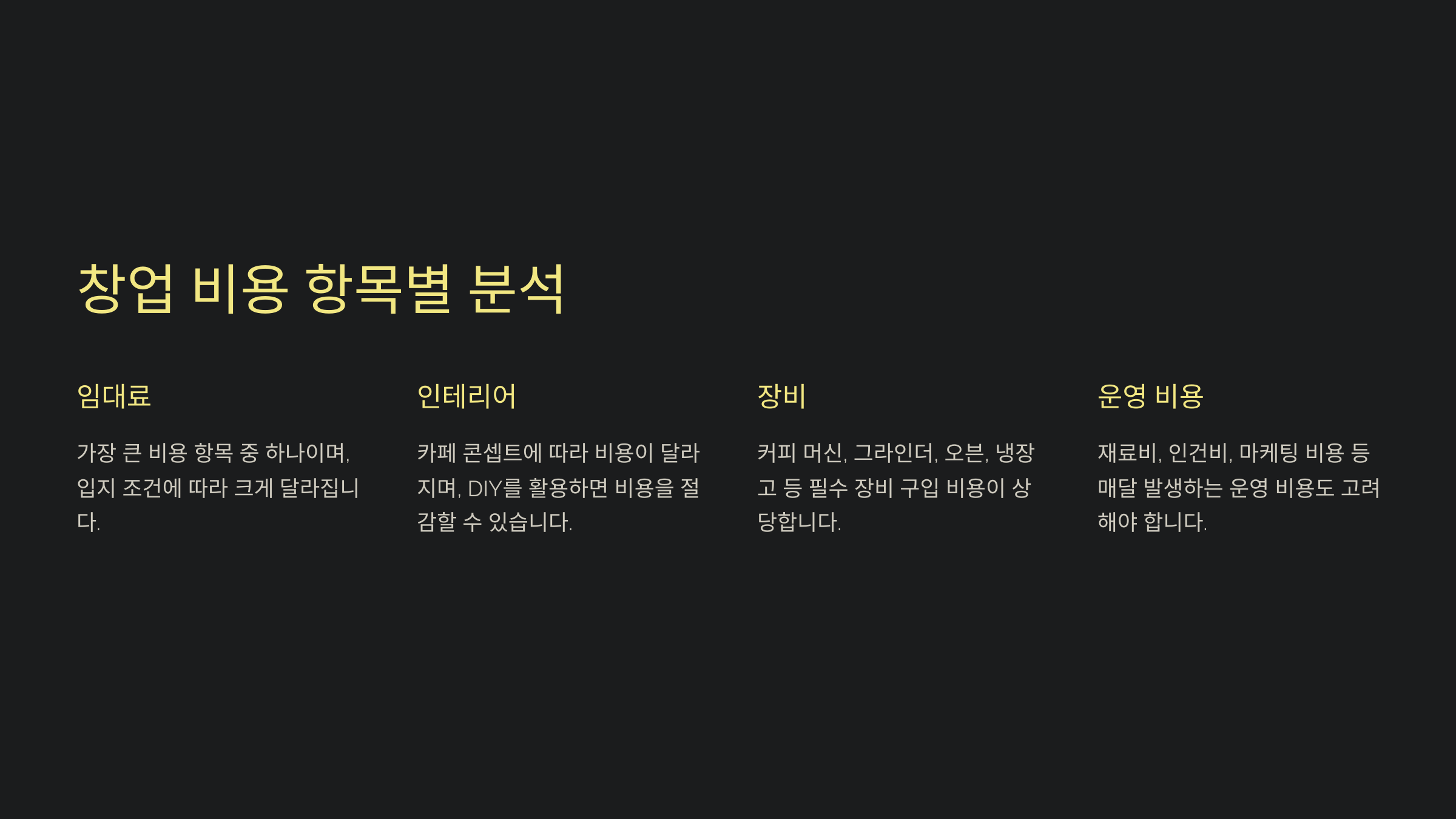 창업 비용 항목별 분석